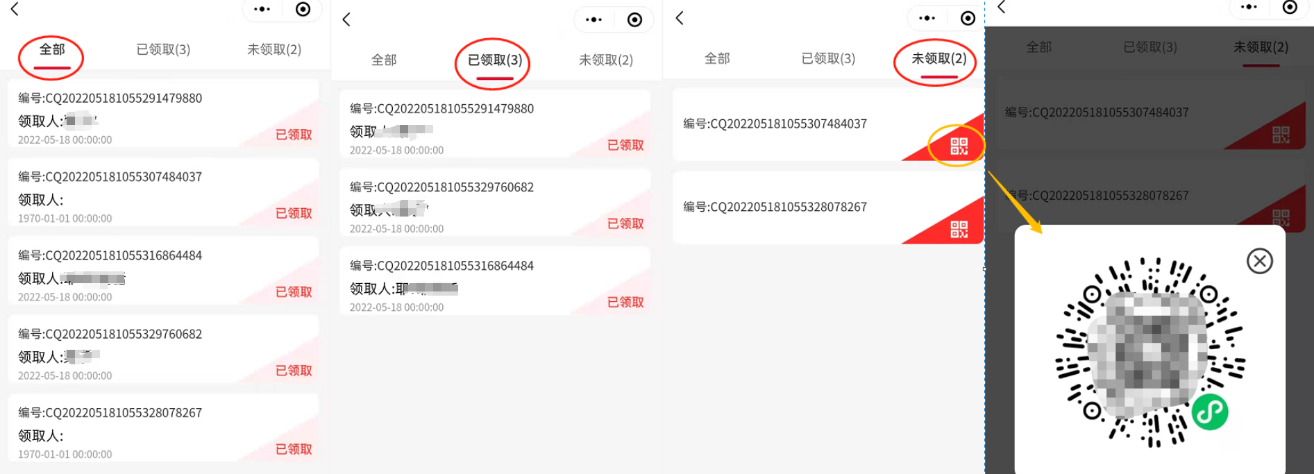 2,领取记录