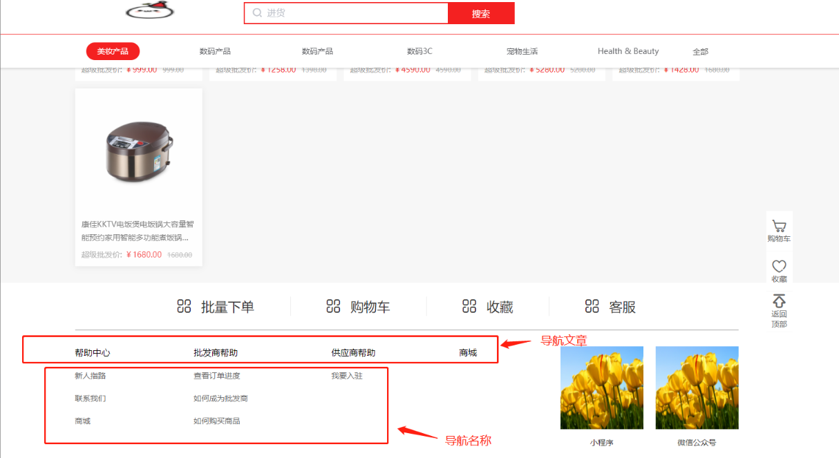 中间最大的图片就是轮播图,可在后端进行设置,包括点击之后的跳转链接等。