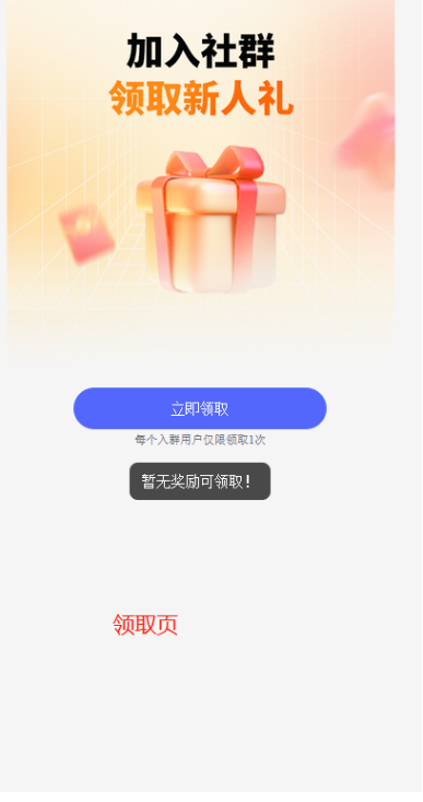 进群并不会直接触发奖励,需要用户访问社群营销的页面领取奖励。
